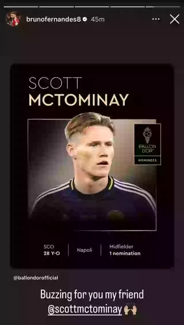 Fernandes retweeted McTominay’s nomination on his official Instagram account, writing, “Buzzing for you my friend.”