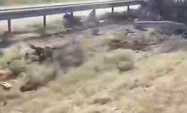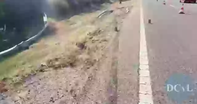 After leaving the road, the car then appears to strike a nearby guardrail before rebounding back towards the road.