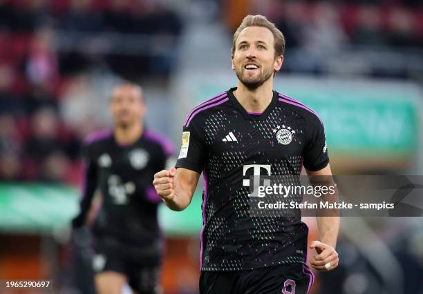 AUGSBURG, GERMANY – JANUARY 27: Harry Kane of Bayern Muenchen celebrates as he scores