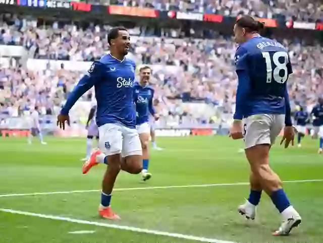 Everton defeated Brighton 2-0 in their inaugural game at the new Hill Dickinson Stadium, with goals from Iliman Ndiaye and James Garner sealing the historic triumph.