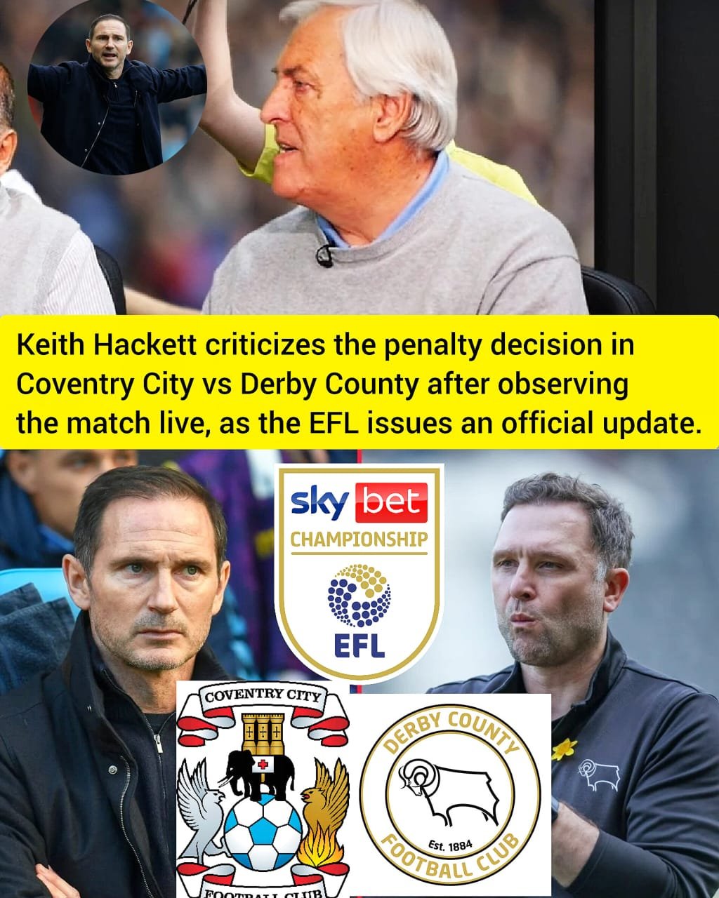 Keith Hackett criticizes the penalty decision in Coventry City vs Derby County after observing the match live - talk2soccer