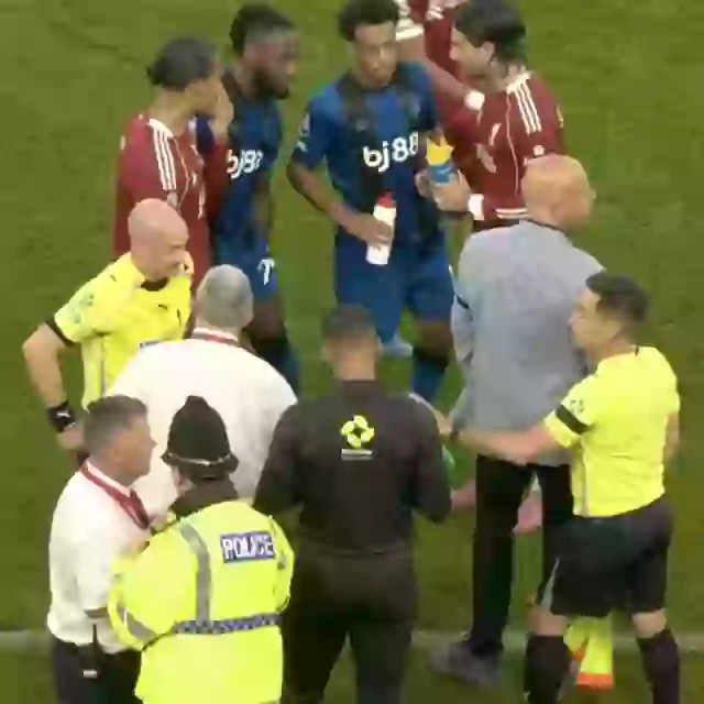 When Liverpool won a corner, however, Anthony Taylor stopped the game just before the half to speak with Arne Slot and Andoni Iraola before making his way to the touchline.