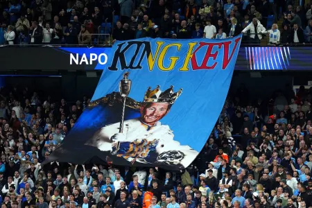 City fans gave their former star a hero’s welcome, with banners saying “King Kev” and chants of his name resounding across the stadium as he exited the ground.